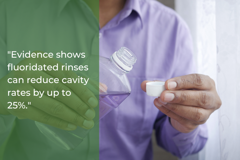 While brushing and flossing are foundational, we add measurable protection by using a fluoride mouthwash or, for higher-risk adults, prescription-strength fluoride. Fluoride strengthens enamel, enhances remineralization, and can reverse early tooth decay. Consistent mouthwash use after brushing delivers topical fluoride, helping reduce plaque accumulation that drives cavities. Evidence shows fluoridated rinses can reduce cavity rates by up to 25% with regular use.